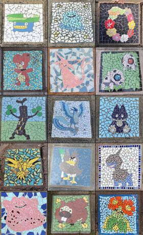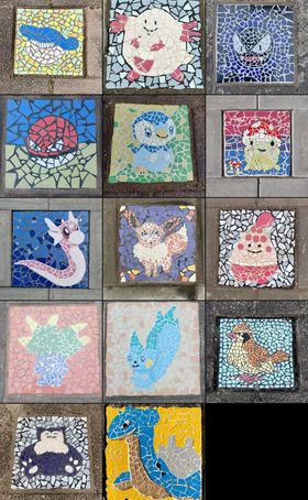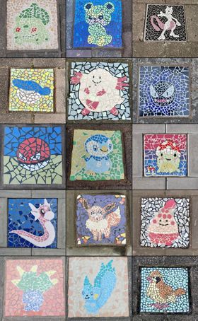 Zoetermeerders Rita, Eline, Sandra, Marieke, Vincent, Janneke, Manon, Yvette , Tom, Juul , Jaime en Stella zijn de initiatiefnemers van de Pokémon tegels en hebben de mozaïeken gemaakt.